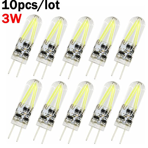 Pocketman 10 Pack 3W G4 LED Filament Bulb,Bi-pin Base 2xFilament COB dimmable LED Lamps dimmable,Equivalent to 20W Halogen Bulb,AC/DC 12V, Cool White