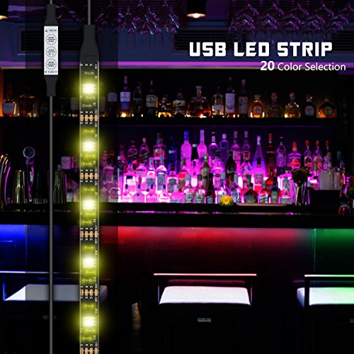 [RICH LIGHT EFFECT] - The USB LED Light Strip can cycle between 20 Color Selection arrays of colors, strobes, or cycling colors.