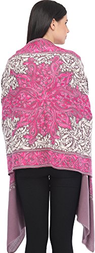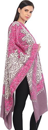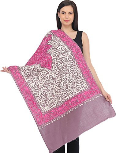 (Exotic India)/Accessories/Cold Weather Accessories/DIRECT FROM USA/Exotic India Dusky-Orchid Stole from Kashmir with Ari-Embroidered Paisl - Purple