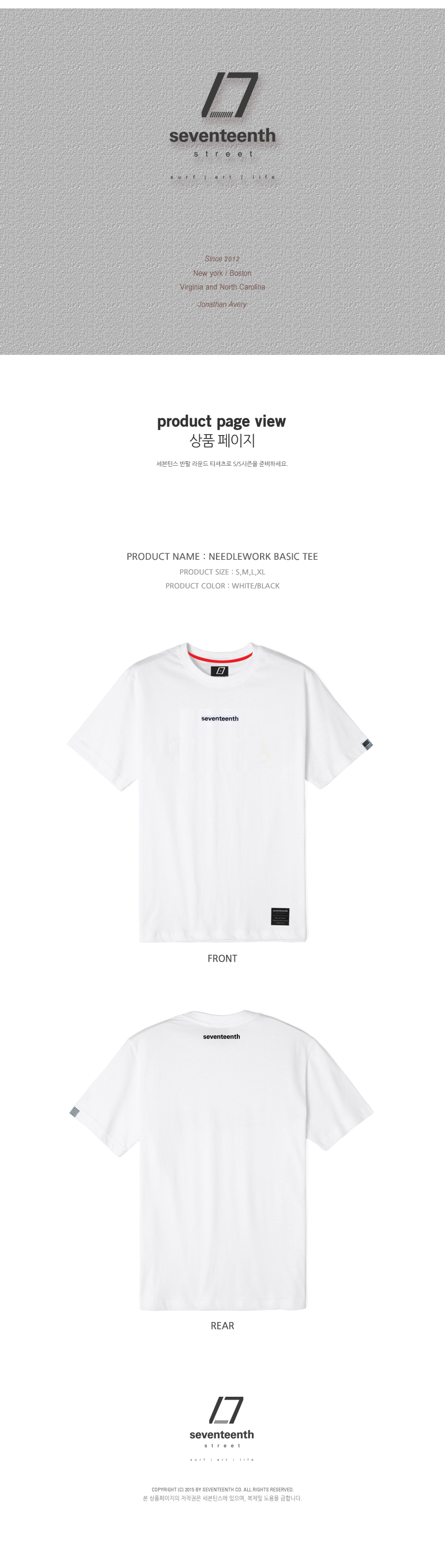 SEVENTEENTH NEEDLEWORK BASIC TEE - WHITE BLACK