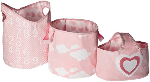 ReleaseDate : 2016-04-20 Studio : Delta Children Publisher : Delta Children Binding : Baby Product Product Description Decked out with whimsical patterns, an adorable applique, and the perfect mix of shapes and sizes, the 3-Piece Canvas Nursery Storage Set from Delta Children makes straightening up fun. Helping you clear clutter in the most charming way, these durable canvas bins come in three handy shapes: a caddy, a bucket and a tote. Large enough to store blankets, toiletries or clothing, they all come with easy-to-grasp handles, so you can tote them from room to room. 0