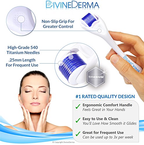 BEST DERMA ROLLER TITANIUM MICRONEEDLE 0.25mm | DivineDerma 540 Micro Needling DermaRoller For Face | Professional Grade Beauty Skin Care...