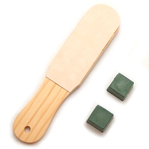 -. Feature : 切れにくくなった革包丁、ナイフ、スーベルカッター等のための研磨用青砥(ルージュスティック)と研磨用の木台のセットです。 / 木台の両面に貼った革にルージュスティックを塗り込み、革砥ぎ用の「革砥」を作ることができます。革砥ぎの効果は抜群! ご愛用の革包丁、ナイフ、カッター、レザークラフトの道具の切れ味を甦らせます。また錆防止にもなりますので、道具をより長くお使いいただけます。 / 研磨用木台はレギュラーサイズと一回り大きいワイド&ロングタイプの2種類を用意しました。 / さらに、革砥ぎの方法について初めての方にもわかるように説明書を付けております。道具を大切に。素敵な作品作りにお役立てください! / 【セット内容】 ルージュスティック×2個 / 革研ぎ台 / 革砥方法詳細説明書付き