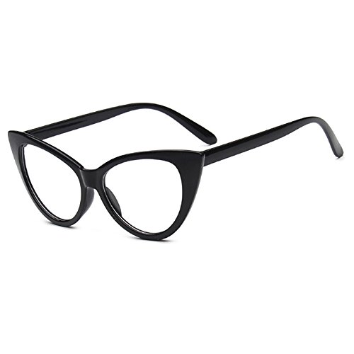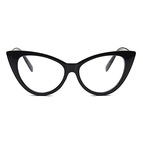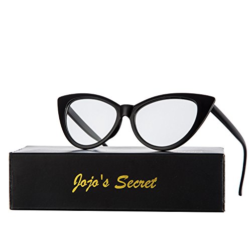 JOJO'S SECRET Super Cat Eye Sunglasses For Women Retro Plastic Frame Clear Lens Eyewear JS029 (Black/Clear, 1.9)