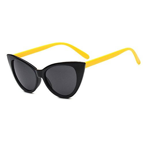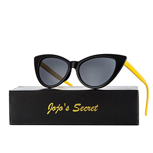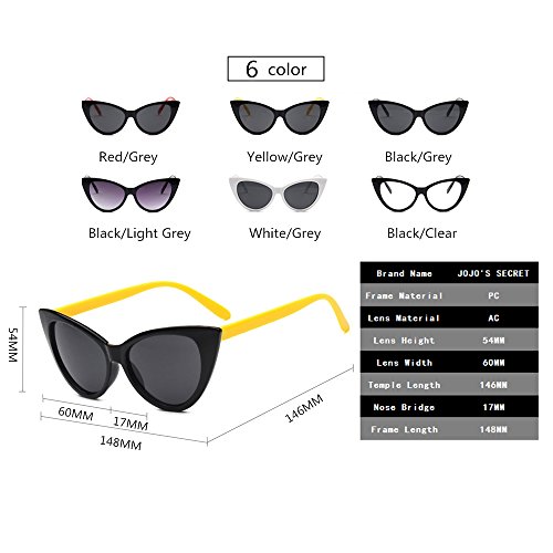 JOJO'S SECRET Super Cat Eye Sunglasses For Women Retro Plastic Frame Clear Lens Eyewear JS029 (Yellow/Grey, 1.9)