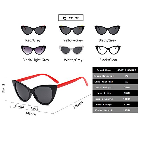 JOJO'S SECRET Super Cat Eye Sunglasses For Women Retro Plastic Frame Clear Lens Eyewear JS029 (Red/Grey, 1.9)