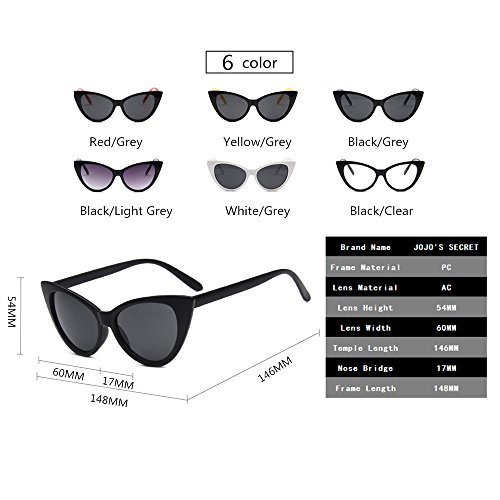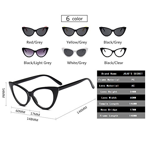 JOJO'S SECRET Super Cat Eye Sunglasses For Women Retro Plastic Frame Clear Lens Eyewear JS029 (Black/Grey, 1.9)