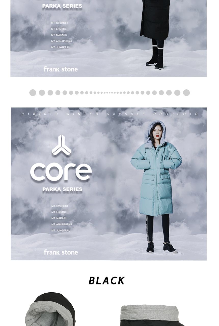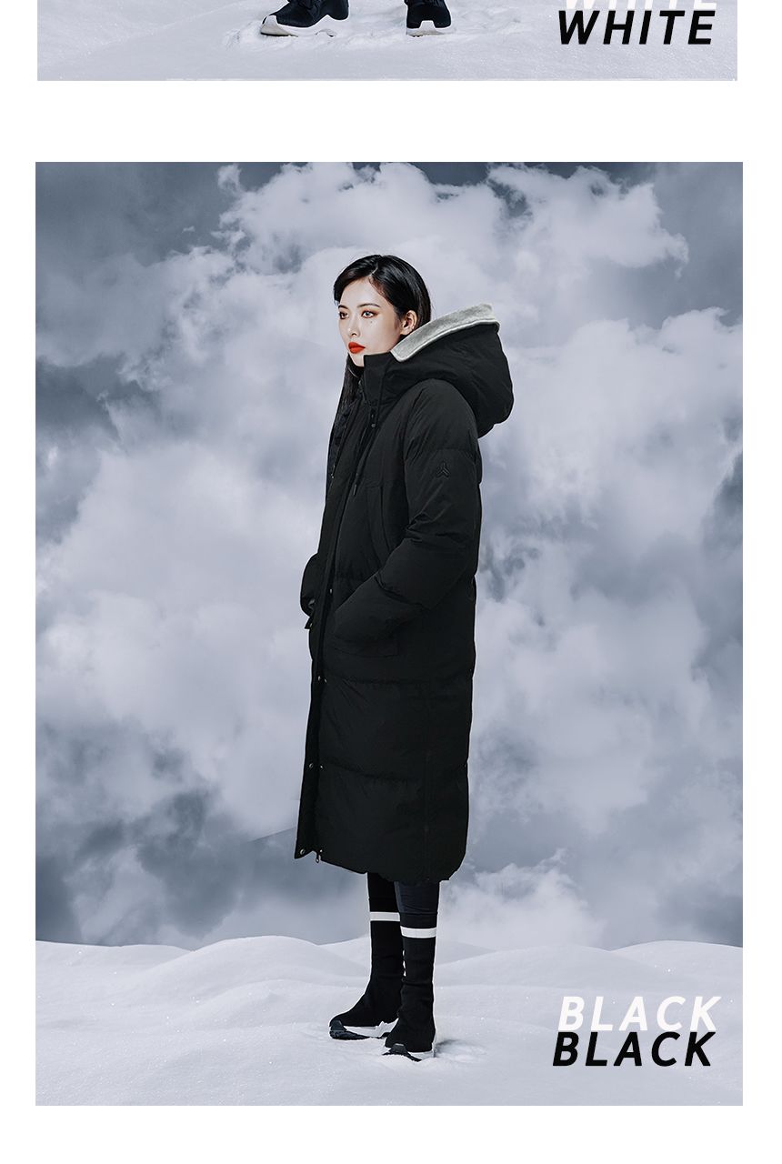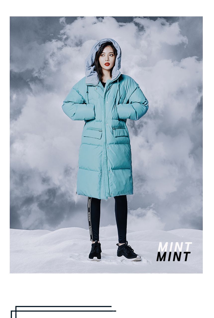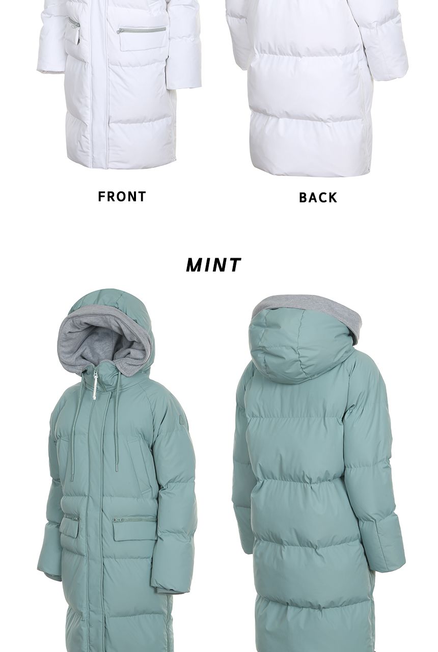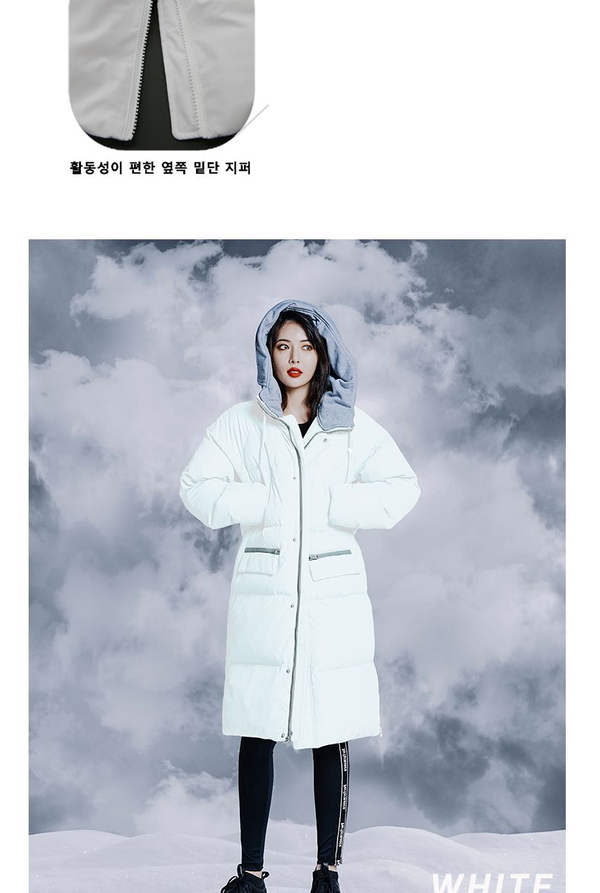 여성용 후드배색 롱다운점퍼 입니다.