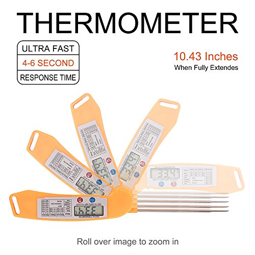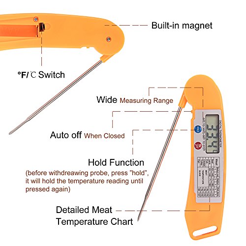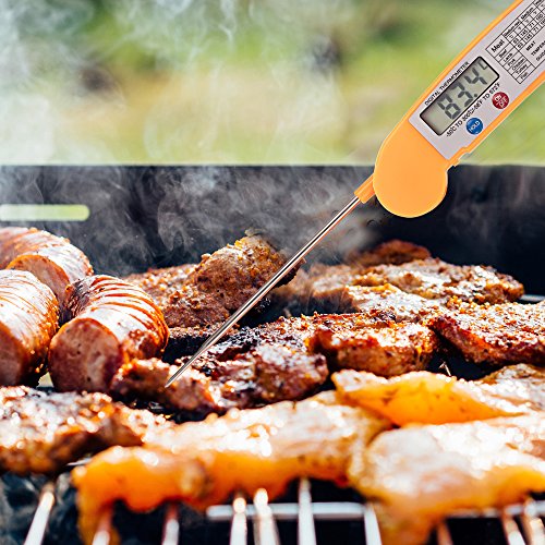 Instant Read Meat Thermometer - Orange Digital Thermometers for Food Meat Cook Grill BBQ Milk & Bath Water