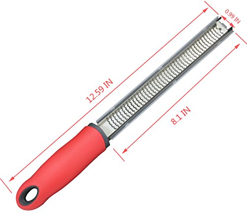 Grater & Zester, Corla Art Pro Citrus Stainless Steel Grater, Sharp Blade Zester with Plastic Safety Cover for Shaving Cheese, Lemon, Ginger, Garlic, Cucumber, Chocolate (Red Handle)