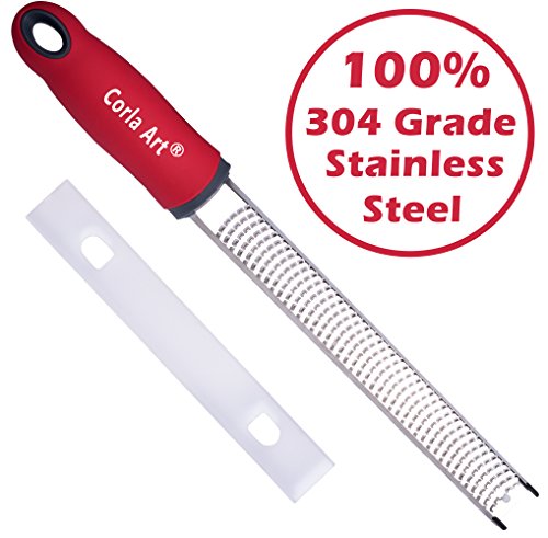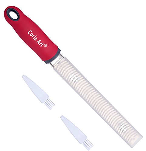- 【STAINLESS STEEL BLADE】The Corla Art Grater Zester comes with a razor-sharp 18/8 stainless steel blade, 2 pieces free small cleaning brushes and protective cover, can handle anything you find in the kitchen. The comfortable, non-slip handle and its unique curved sides make it extremely rigid and easy to apply as much or as little force as needed.