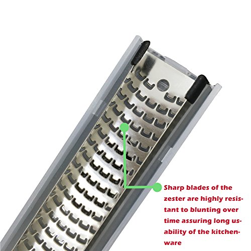 - 【FOOD GRADE MATERIAL】Compare with other brand cheese grater, ours is made of food grade 304 stainless steel, which is rustproof. Sharp blades of the lemon zester are highly resistant to blunting over time assuring long usability of the kitchenware. And there are a hole in the handle, you can hang it up when you do not need it and keep it clean.