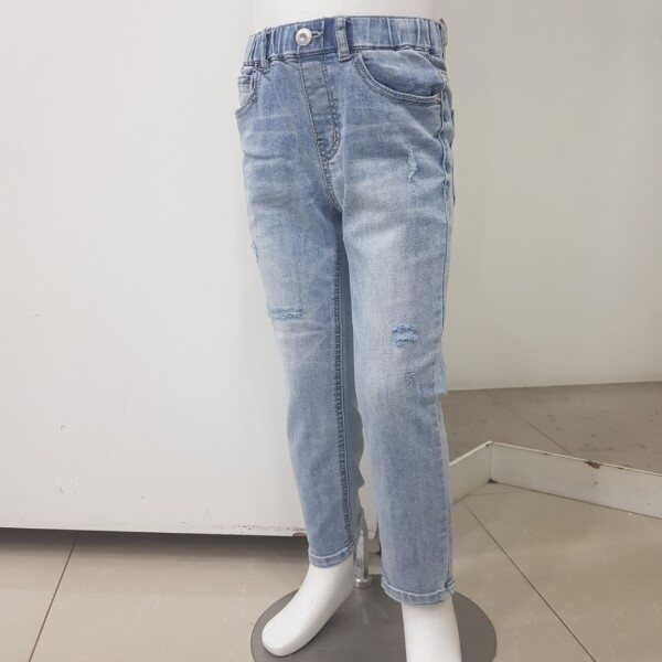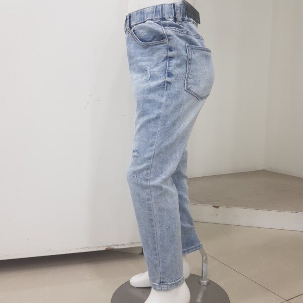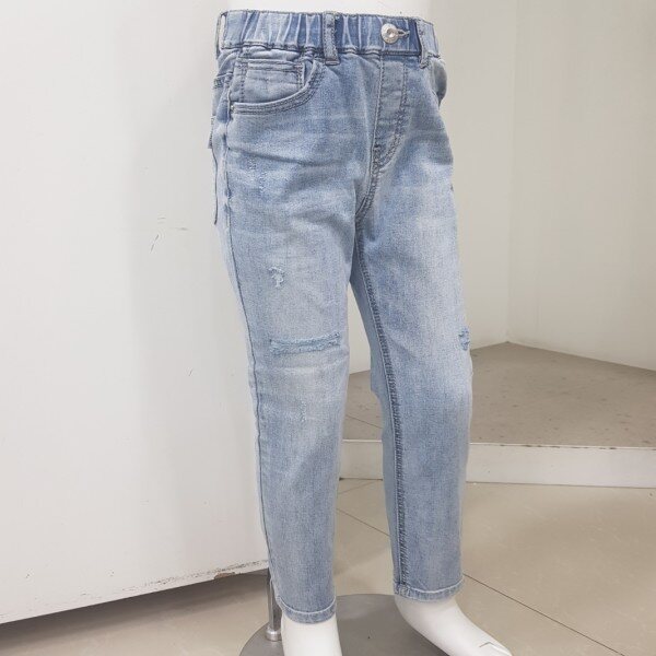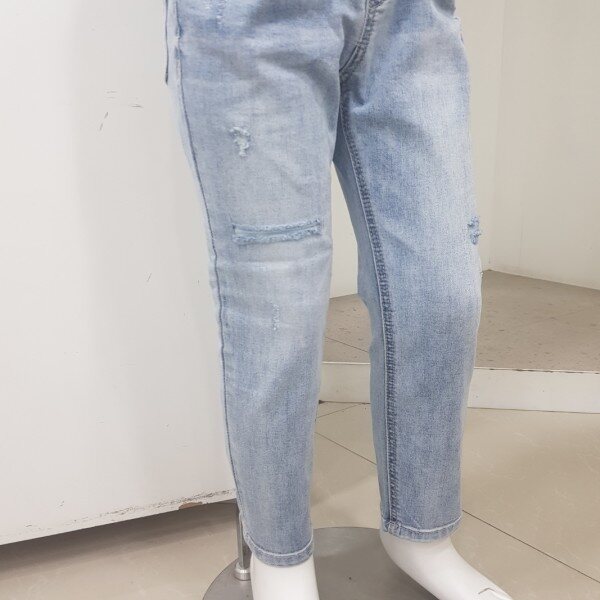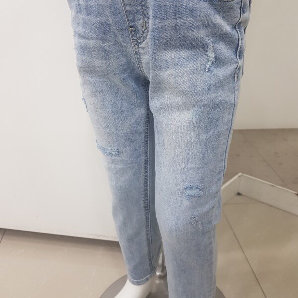 2019년 S/S 신상.남아 ICE톤 구제 슬림핏 데님팬츠 입니다.오픈 디스트로이드의 워싱감 있는 스타일로 S/S시즌의 시원한 느낌을 잘 살린 디자인 입니다.