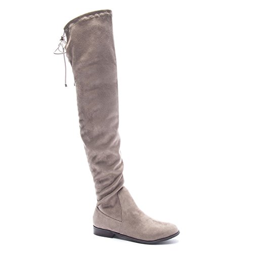 Product DescriptionOver the knee flat slouchy boot with tie back closure0