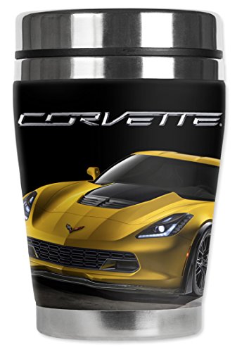 Mugzie Corvette C7 Yellow II Vette "Mini" Travel Mug with Insulated Wetsuit Cover, 12 oz, Black