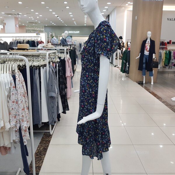 앞판 러플장식.밑단 언발 실루엣이 여성스러운 플러럴쉬폰원피스