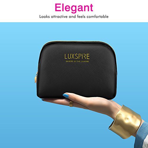 Luxspire Makeup Cosmetic Storage Case, Portable Waterproof Shell Make up Train Case Cosmetic Pouch Travel Storage Bag Toiletry Organizer Tool, Black