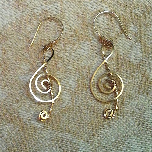 -. Title : 14k Goldfilled Treble Clef Earrings on Fancy Goldfilled Hooks Handmade