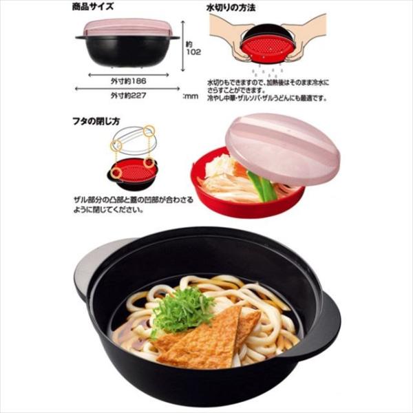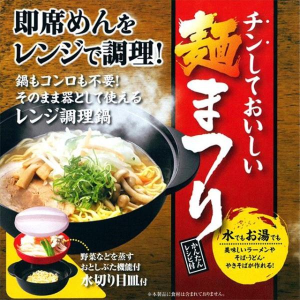 ラーメン/うどん/そばをレンジで簡単&時短調理 麺まつりラーメンやうどん、年越しそばも簡単調理!ガス・コンロ・鍋ナシでできちゃう!かんたんにササッと美味しくできます。麺はコシのあるシコシコ麺に!お湯がなくても水からできます。水切りや温野菜の調理もできるので、料理の幅も広がり、具材も工夫できます 夏には冷麺メニューにも重宝しますよ!野菜などを蒸せる『おとしぶた機能付き水切り目皿』、ニンニクなどをすりおろせる『すりおろしレンゲ』付属。レシピもあるので、すぐにレンジ調理にトライ!・本体(鍋容器)・フタ・ザル・レンゲ・説明書(レシピ)・サイズ 本体 186×227×102mm・197g レンゲ 49×170×14mm・12g ・材質 本体・ザル・フタ ポリプロピレン(耐熱温度:140度/耐冷温度:-20度) レンゲ AS樹脂(耐熱温度:140度/耐冷温度:-20度)・満水容量 1.2リットル