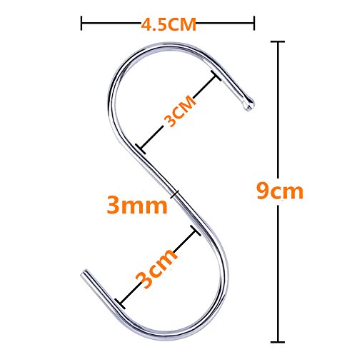 - Size and amount: s hook length: 9 cm/ 3.6 inches; Size: M; Maximum bearing weight: 5 kg; Weight for each one: 10 - 11 g; Quantity: 20 x S shaped hooks