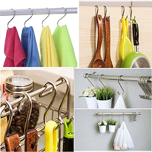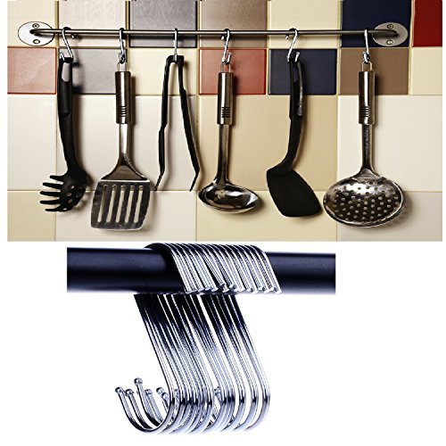 - Sturdy and s shape: rack hooks are made of metal, strong and can withstand weight; Curved hangers securely hook the items and do not slide off easily