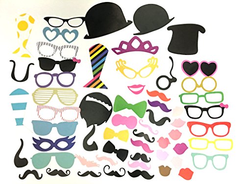 Timemorry 58 Piece Photo Booth Props DIY Kit for Wedding Party Birthday Party Photobooth, Colorful Props on a Stick, Hats, Glasses, Mouth