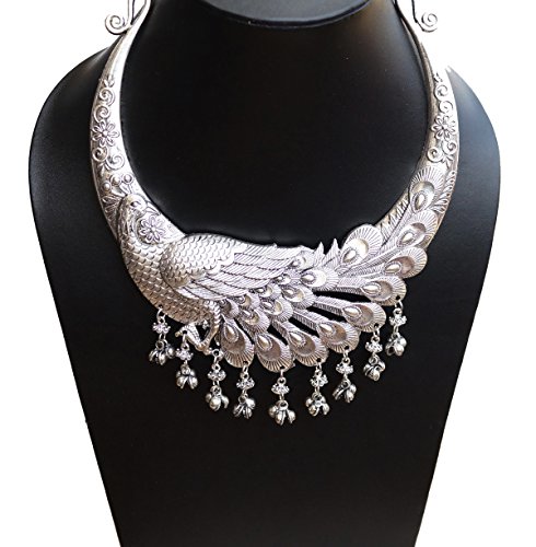 Necklace Length Around The Neck:40 CM. Necklace width: 0.5 CM, Pendant Length: 6 CM, Pendant Width: 15 CM. Weight:100 Grams., Colour: Silver