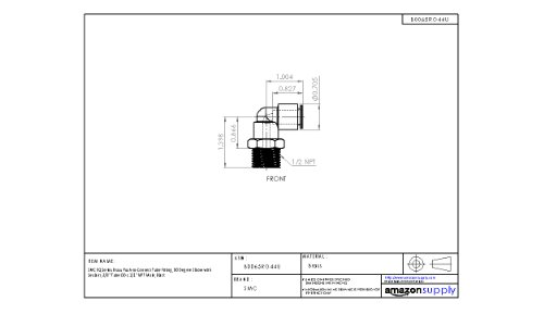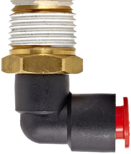SMC KQ Series Brass Push-to-Connect Tube Fitting, 90 Degree Elbow with Sealant, 3/8" Tube OD x 1/2" NPT Male, Black