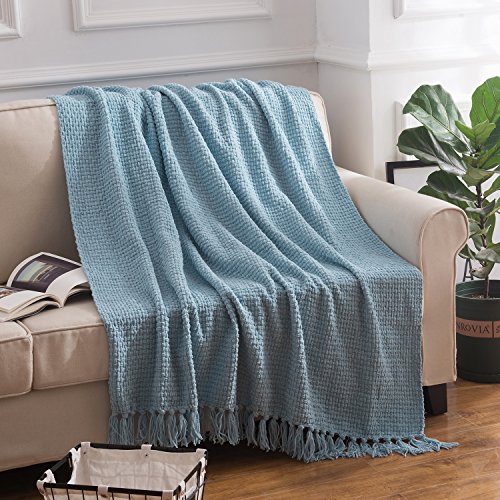 Throw Blanket, MELODY HOUSE Super Soft Decorative Woven Plaid Pattern Throw with Tassels, 50x60, Silver Blue