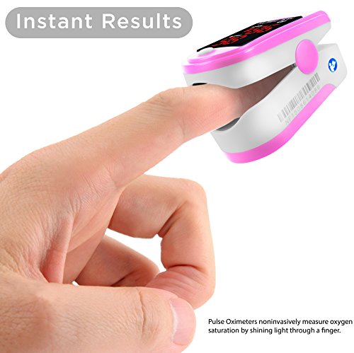 -. Feature : INDIVIDUALLY TESTED FOR ACCURACY: Each device undergoes rigorous testing and is approved for use by the FDA. / QUICK READINGS: Incredibly easy to use. Simply turn on the device, place your finger within it, and have your pulse rate and SpO2 instantly displayed. / OUT-OF-BOX READY: Includes two Free AAA batteries, convenient carry case, useful lanyard and illustrated instruction manual. / ONE-YEAR WARRANTY: We stand behind our products with excellent customer service and an industry leading one-year guarantee. / You Get: the Fingertip Pulse Oximeter, Carrying Case, Neck/Wrist Cord, User Manual, 2-AAA Batteries, Plus our no-hassle 30-Day Full Money Back Guarantee and our One-Year 100% Full Manufactures Warranty managed by our friendly customer service care center in the US.