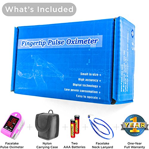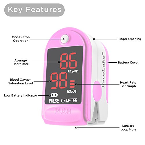 -. Title : Facelake ® FL400 Pulse Oximeter with Carrying Case, Batteries, Neck/Wrist Cord - Pink