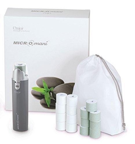 Studio : Emjoi Publisher : Emjoi Binding : Misc. Product Description Emjoi Micro Mani is a unique device created for smoothing and shining nails and toenails. The innovative roller spins 360 degrees, at an amazing 30 times a second, to gently buff away ridges, discoloration and add shine all in the comfort of the home. It is battery-operated, easy to use and compact. A salon worthy manicure in minutes. Battery-operated (2 AA - not included) What is it:The Emjoi Micro-Mani keeps your nails smooth and shiny from the comfort of your home. The Emjoi Micro-Mani does all the work for you quickly and easily. Who is it for: Anyone who wants to skip the hassle of the salon and get smooth nails in the comfort of their own home. Why is it different: The Emjoi Micro-Mani buffs and adds shine to the nails without manual buffing and adding clear polish. The gray micro-smooth roller smoothes out ridges and the white micro-shine roller adds a glossy shine. How do I use it: Insert 2 AA batteries (not included) into the battery compartment located at the bottom of the unit. Turn the unit on by pressing the safety switch lock, located in the center of the on/off switch, pushing the switch up at the same time. Always use the gray micro-smooth roller first and then use the white micro-shine roller. Lightly glide the gray micro-smooth roller over the nail area for one to two seconds. Do not apply pressure; just gently glide it over each nail for one to two seconds at a time. This will smooth the nail and any ridges. After you have used it on all your nails, remove the dust particles with a tissue. Repeat with the micro-shine roller. Change the micro-smooth and micro-shine rollers as needed for best results. Rollers last for a few sessions, depending on frequency of use and size of the area being treated. Make sure the unit is turned off before replacing the micro-mani rollers. Includes: ? Device measures approximately 8"L x 6"W x 1-1/2"W; weighs 3.6 oz ? 1-year Limited Manufacturer's Warranty ? Imported 0