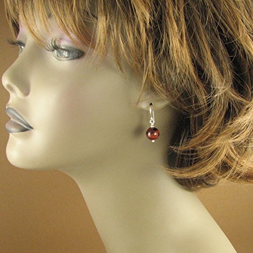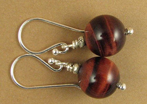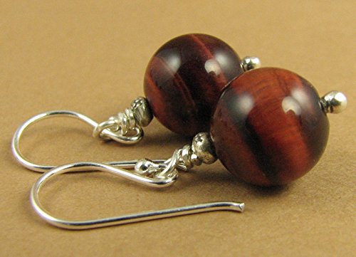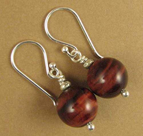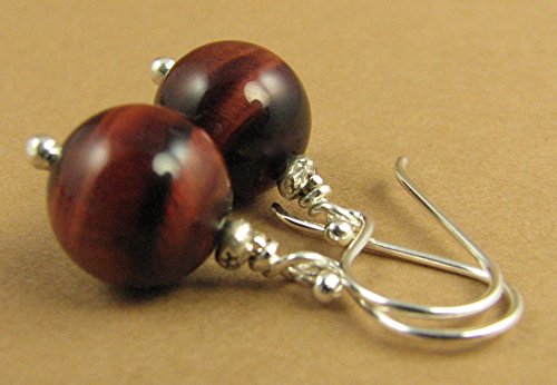 -. Title : Red tiger eye earrings. Round. Natural fire. Sterling silver 925.
