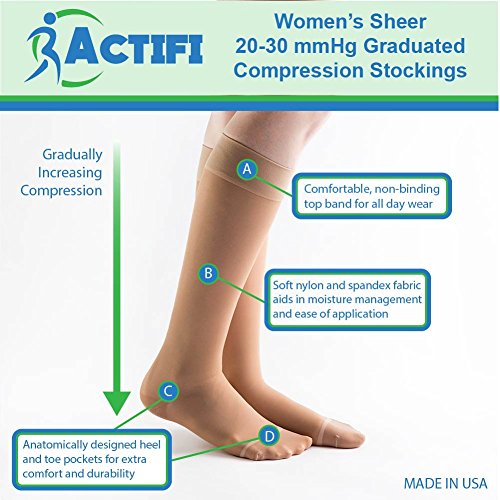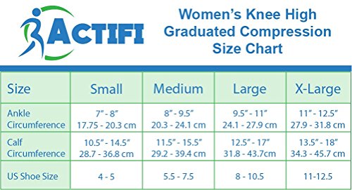 FIRM 20-30 mmHg GRADUATED COMPRESSION – The graduated compression provides maximum compression at the ankle with a progressive reduction through the calf promoting blood flow back to the heart.