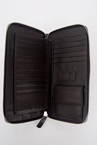 - Feature : Large size organized wallet essential for international travelers and busy professionals / Measures 9" x 1" x 5" / Luxurious quilted leather. 32 card slots (includes center card flap), change pocket, 2 SIM card slots, 3 large document/currency pockets. Black Versace medusa logo lining / Includes tags and box / Secure zip around closure.
