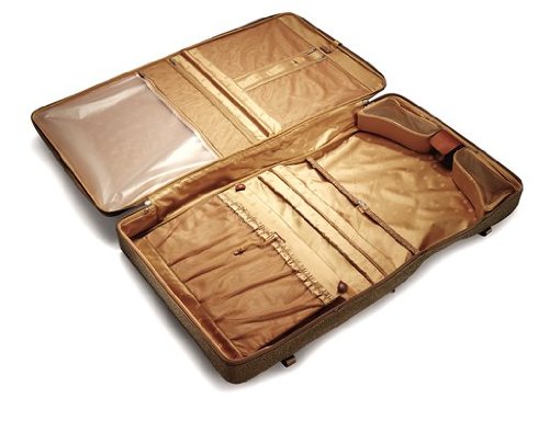 -. Feature : Lots of pockets for organization / Arrive at your destination virtually wrinkle-free by hanging your clothing / Nylon tweed with belting leather trim