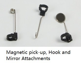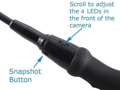 -. Feature : Sensor: 1/9" VGA CMOS. Image Resolution: 648 x 488 pixels (Format: JPEG). Video Resolution: 648x488 pixels (Format: AVI, Frame Rate: up to 30FPS @ VGA). / Focal Distance: 6cm - infinite. Lens: F#2.8 with 54° viewable angle. / Waterproof camera head & cable (handle is NOT waterproof) meet IP68 standard. PE covered cable with ABS handle. / Illumination: 4 white LED lights with adjustable brightness. USB Cable: 200cm (6ft) long with USB 2.0 interface. / Dimension: Flexible cable with handle: 114.1cm (3.7ft). Flexible cable: 88.0cm (2.9ft). Flexible cable diameter: 6.5mm (0.26in). Camera head outer diameter: 8mm (0.31in).
