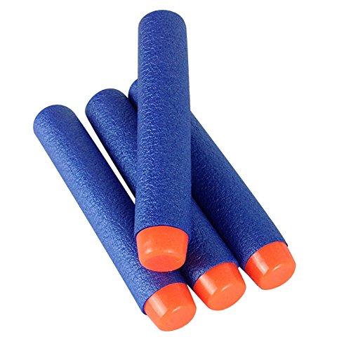 - Feature : 100 pieces packed in one box, fits for most nerf guns and other N-strike elite series guns / It's the best gift for kids toy guns. Made of quality EVA and plastic, light darts and safety when use / The dimensions of the dart: 7.2 x 1.2cm/piece; weighs 5.8 Oz one pack / Small package and lightweight, environmentally friendly / Color: blue & orange