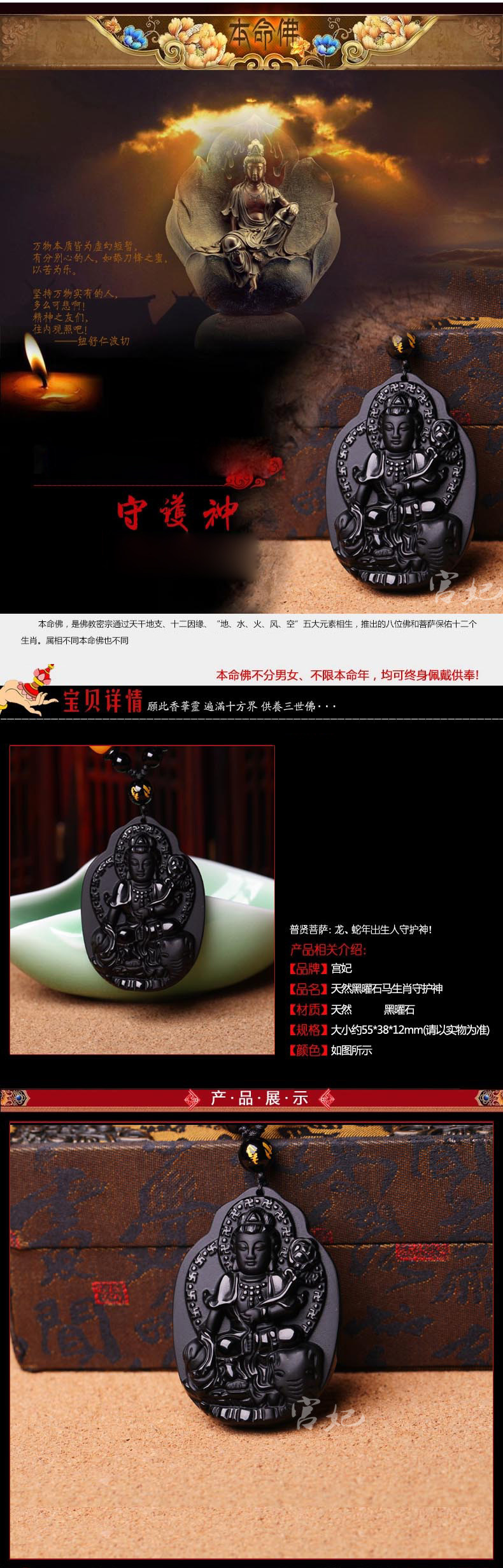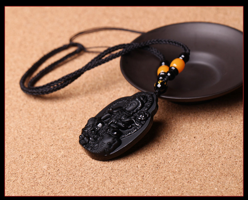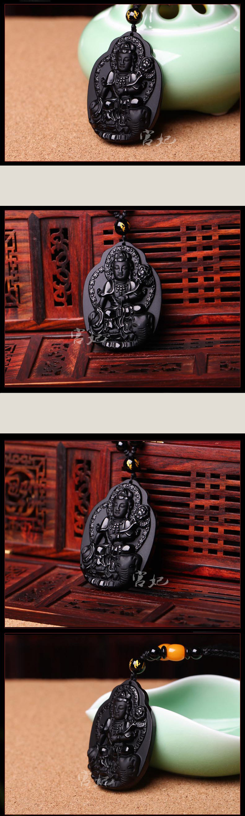 开光天然黑曜石普贤菩萨吊坠男士项链生肖属龙属蛇守护神本命佛