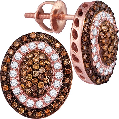 -. Title : Solid 10k Rose Gold Round Chocolate Brown And White Diamond Oval Halo Prong Set Stud Earrings (1/2 cttw)