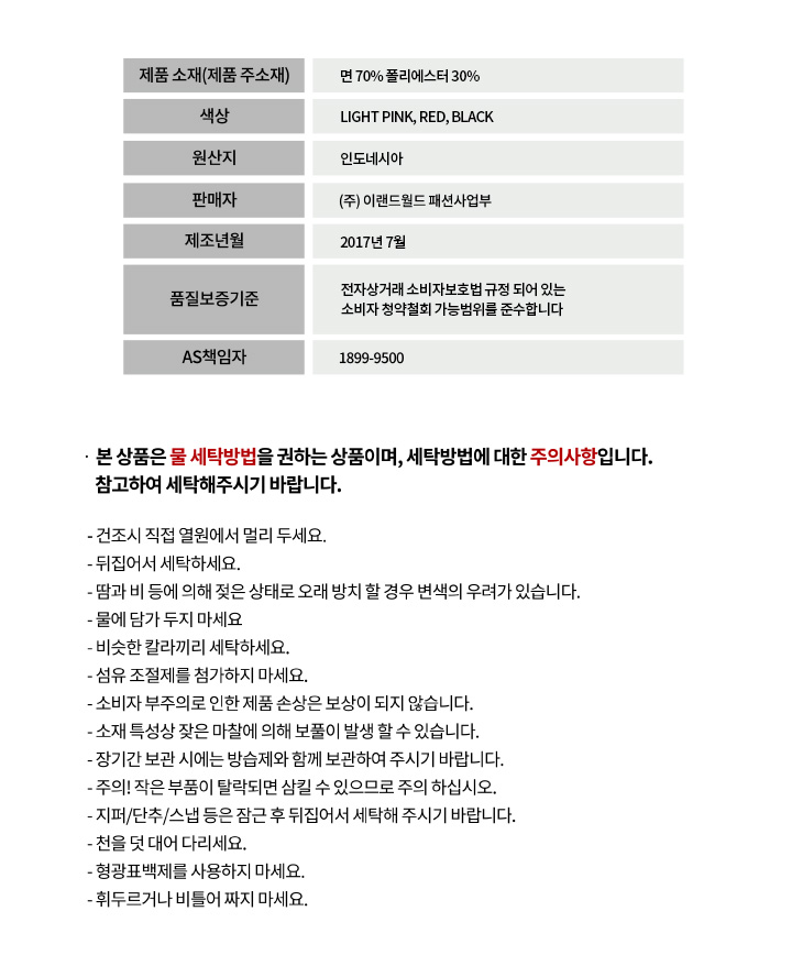 상품 실측 사이즈