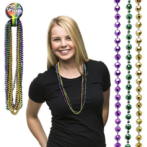 Mardi Gras Bead Faceted Necklaces-33"-12 Pack