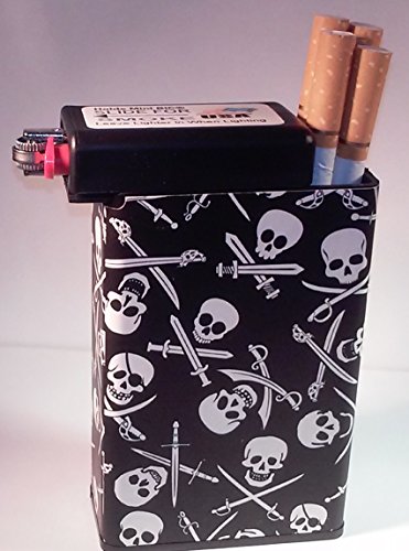 Title : Cigarette Case Pirate Skulls Swords Built on Lighter Holder box Kings 100's ryo