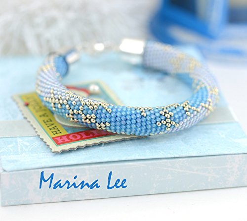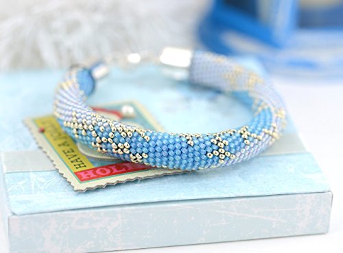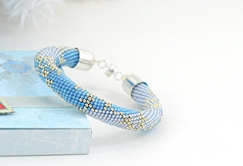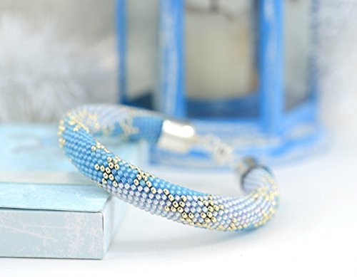 -. Brand : Juicy Beads -. Color : White -. Department : Women -. ProductGroup : Guild Product -. ProductTypeName : GUILD_JEWELRY -. Title : 03 Best Christmas Beaded Bracelet - Silent Night - Bead Crochet Bracelet - Winter Snowflake Blue White Beadwork Bangle Bracelet Jewelry Modern