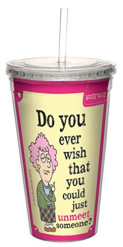 Tree-Free Greetings 16-Ounce Double-Walled Cool Cup with Reusable Straw, Aunty Acid Unmeet Someone (CC98446)