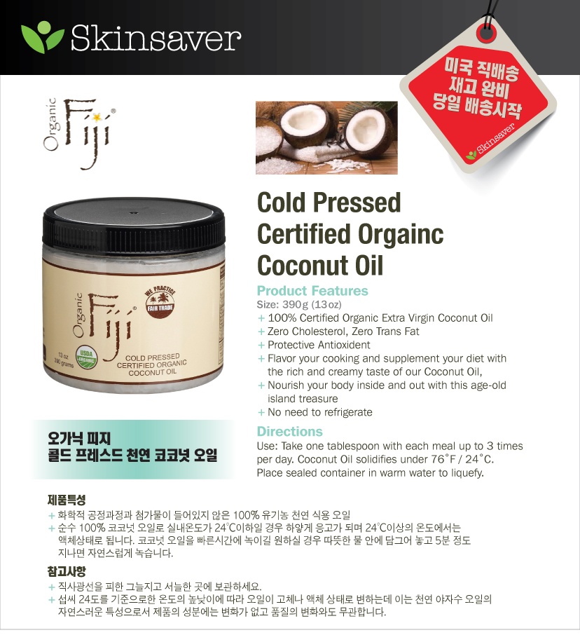 제조국 : 미국, 주요성분: 냉각 압축방식으로 얻어진 코코넛 오일 100 프로