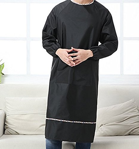 Mens Long Sleeve aprons waterproof and oil proof smock overalls adult Home Furnishing kitchen (Black color)