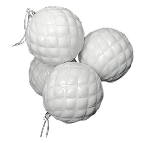 DAK 4 Count Shiny Winter White Diamond Shatterproof Christmas Ball Ornaments, 3.75"