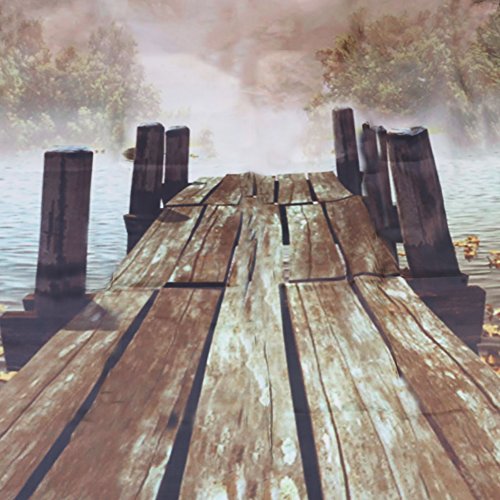 FuXing Shower Curtain Waterproof Polyester Fabric Digital Printing Bathroom Curtain 180 x 180cm (Wooden bridge)