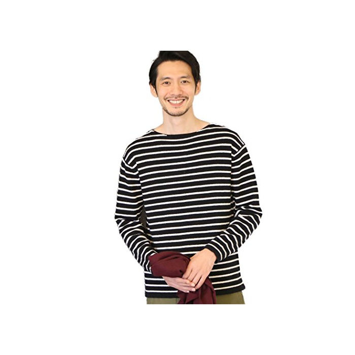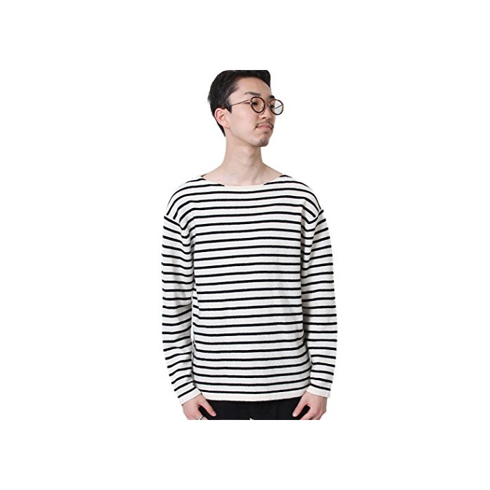 (칼파엔) COEN 【화장실가】양털 블렌드 보더 washer 블루 보트 넥 니트 75306067101